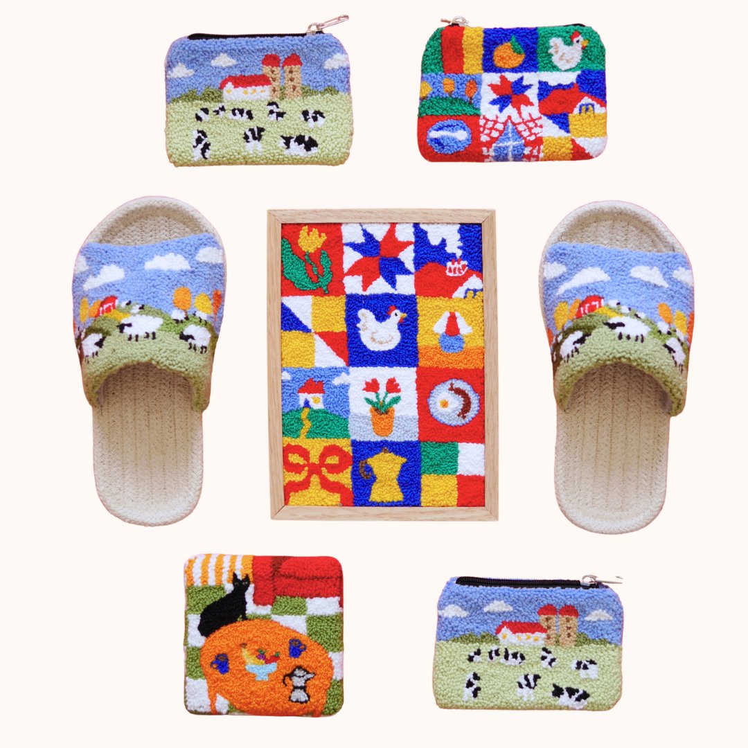 Hand sculpted lamps, punch needle wares, coasters, and more.
