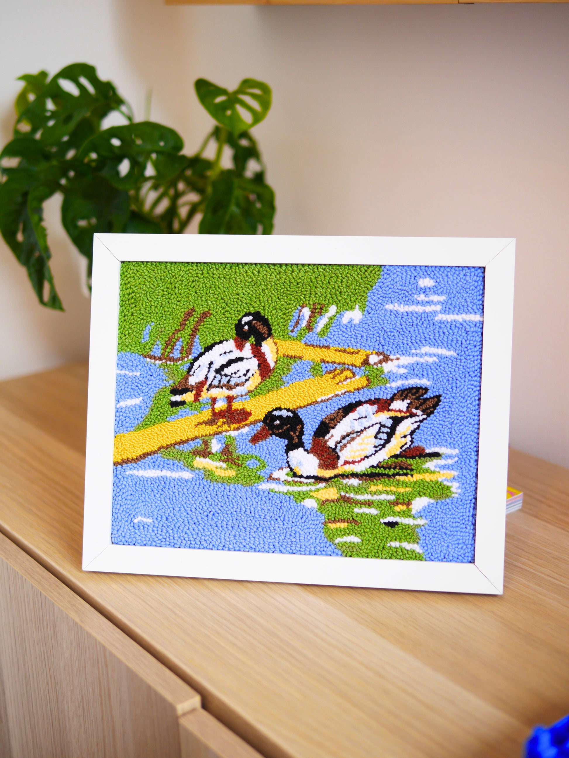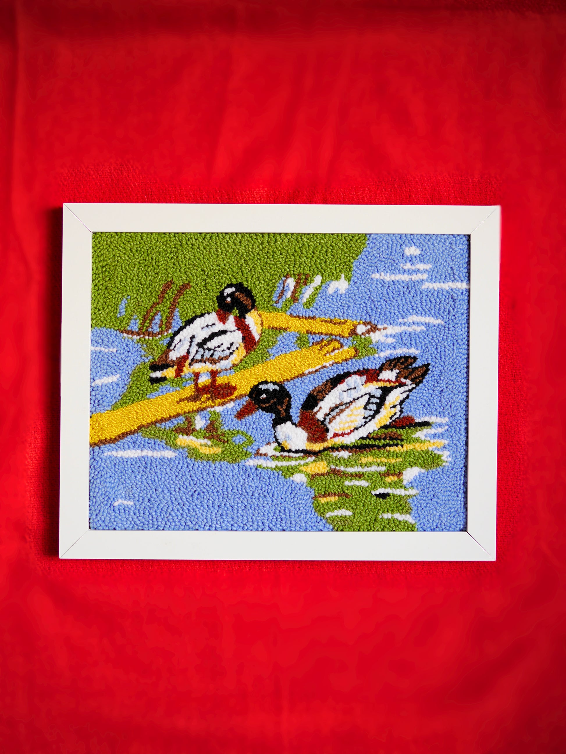 An original hand punchneedle embroidered framed piece.