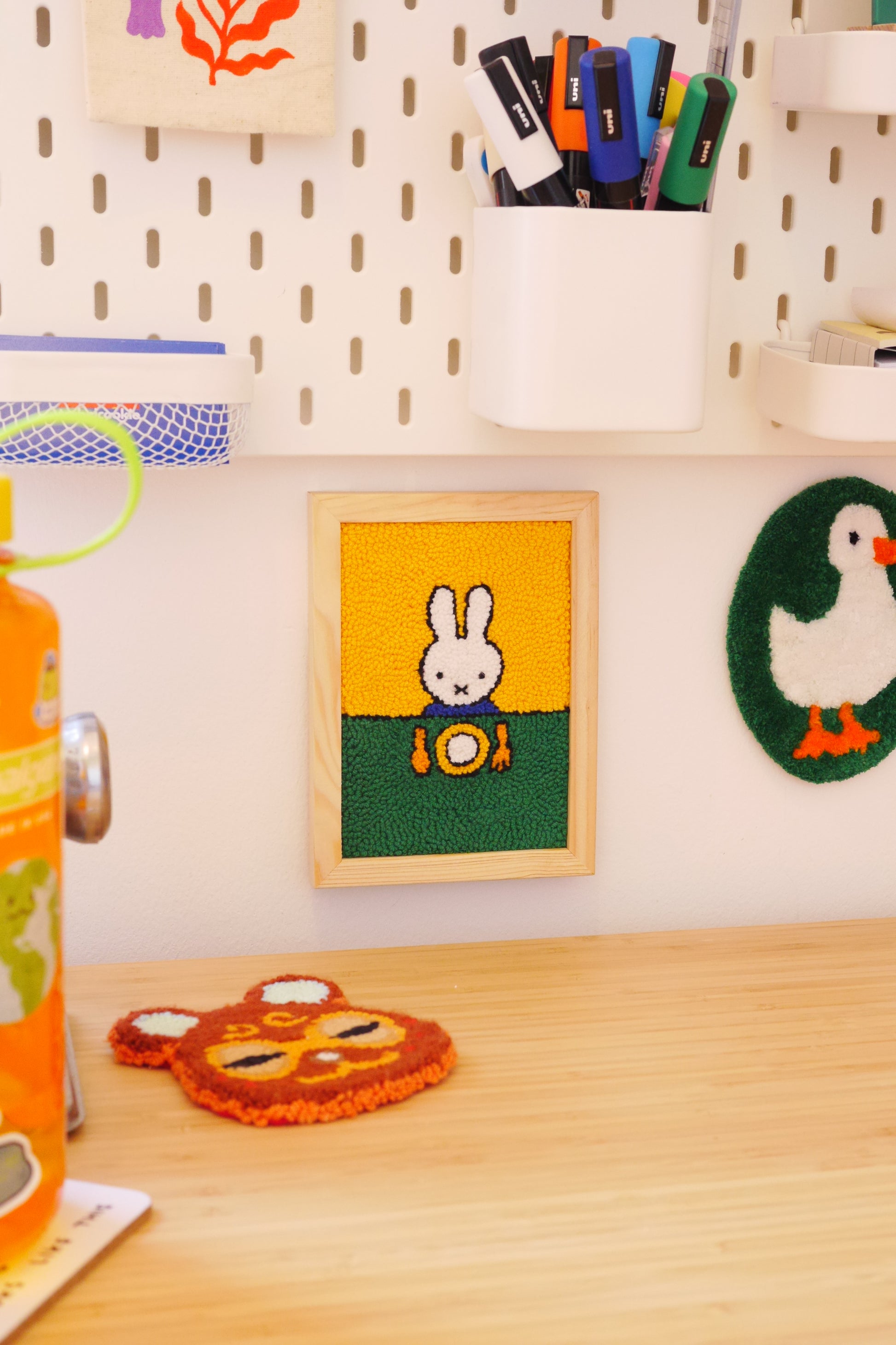 Handmade punchneedle Miffy scene in an oak 12cm x 16cm frame.