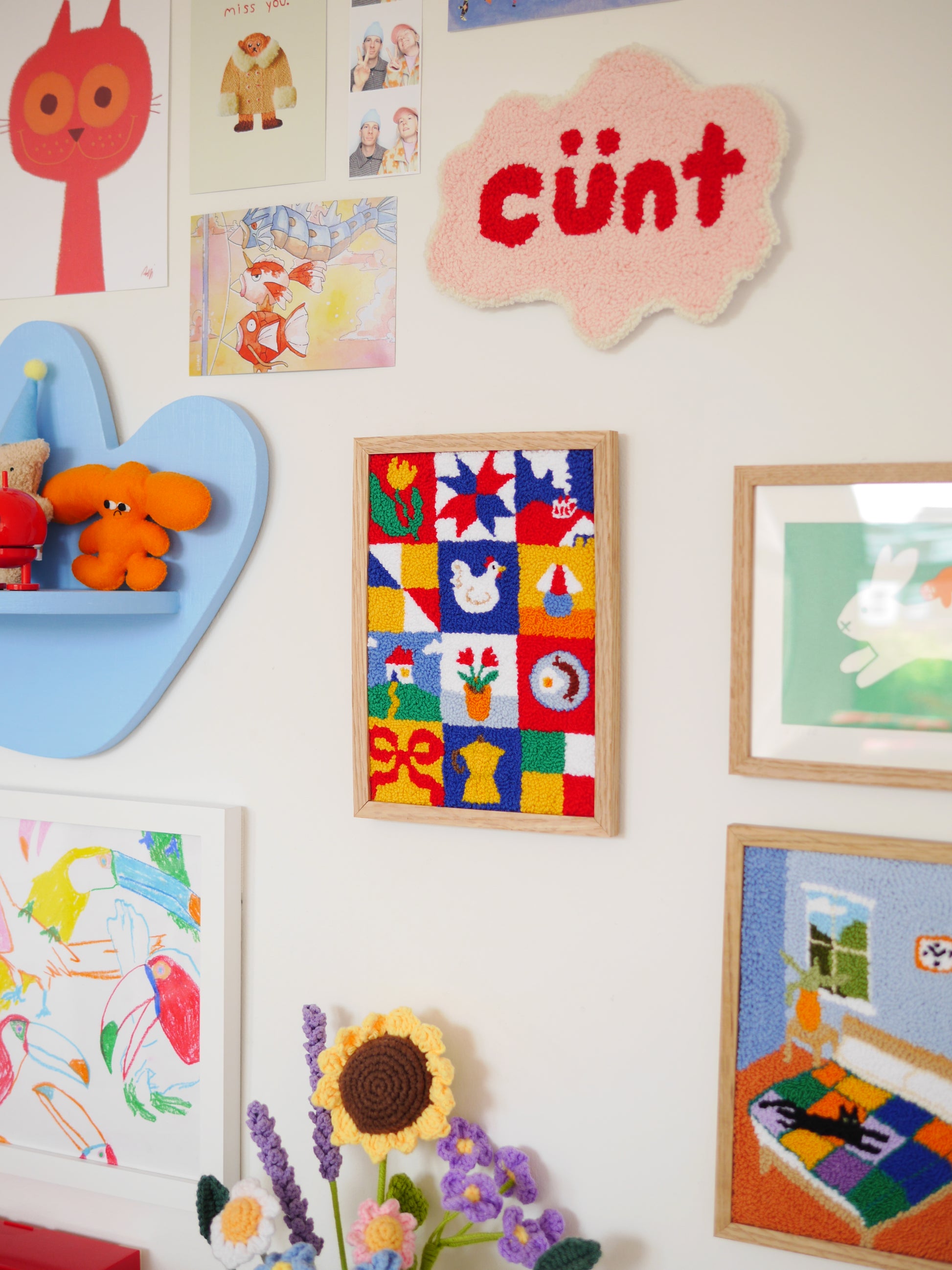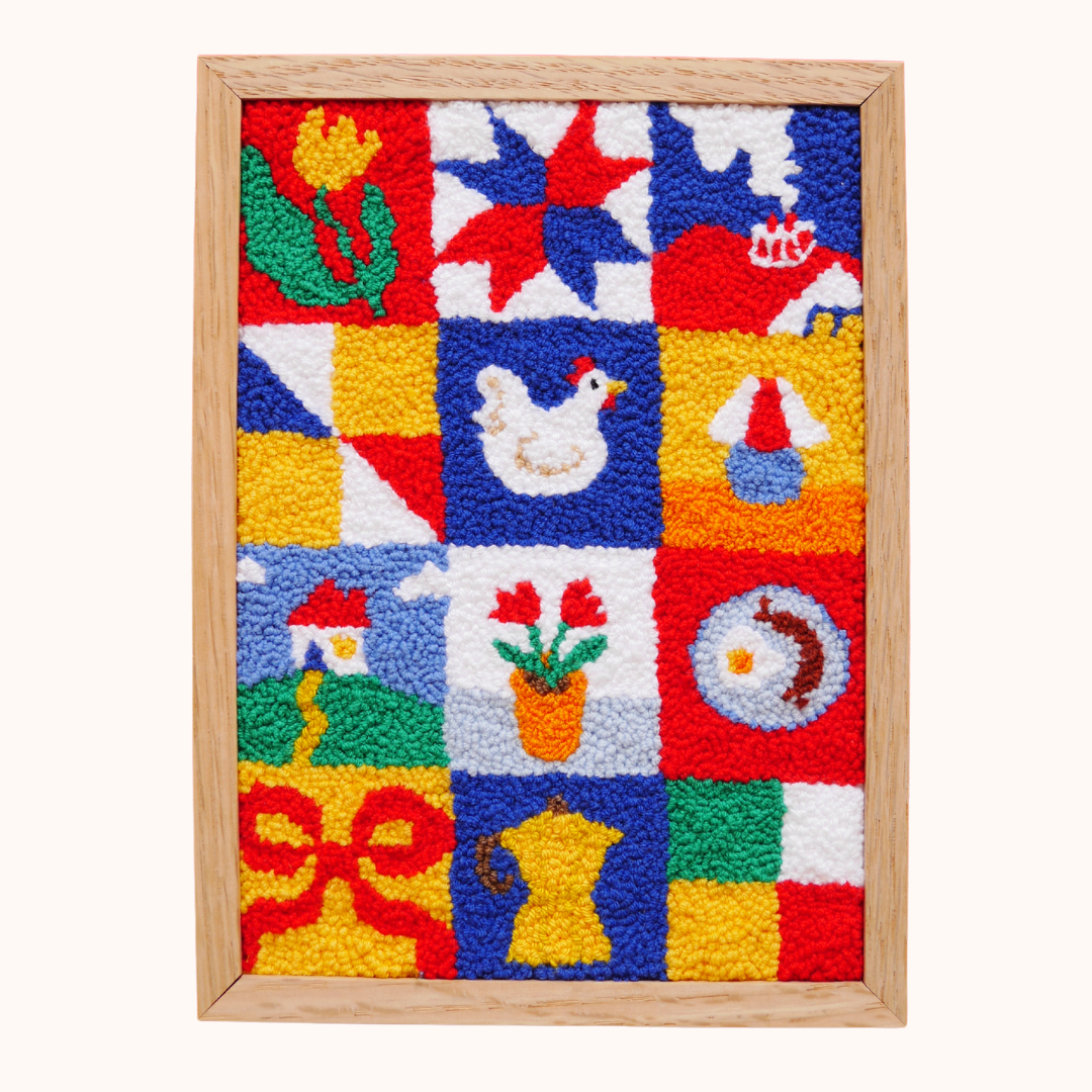 An original hand punchneedle embroidered framed piece.