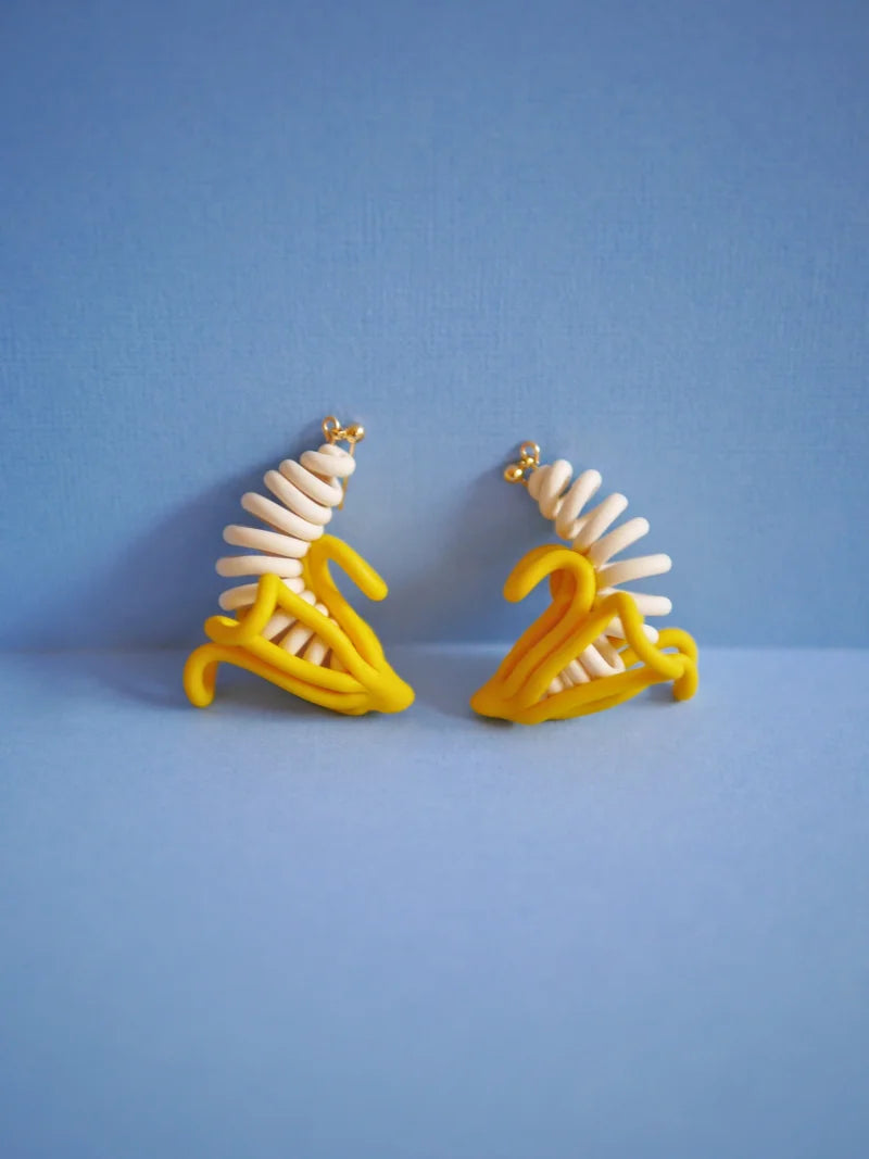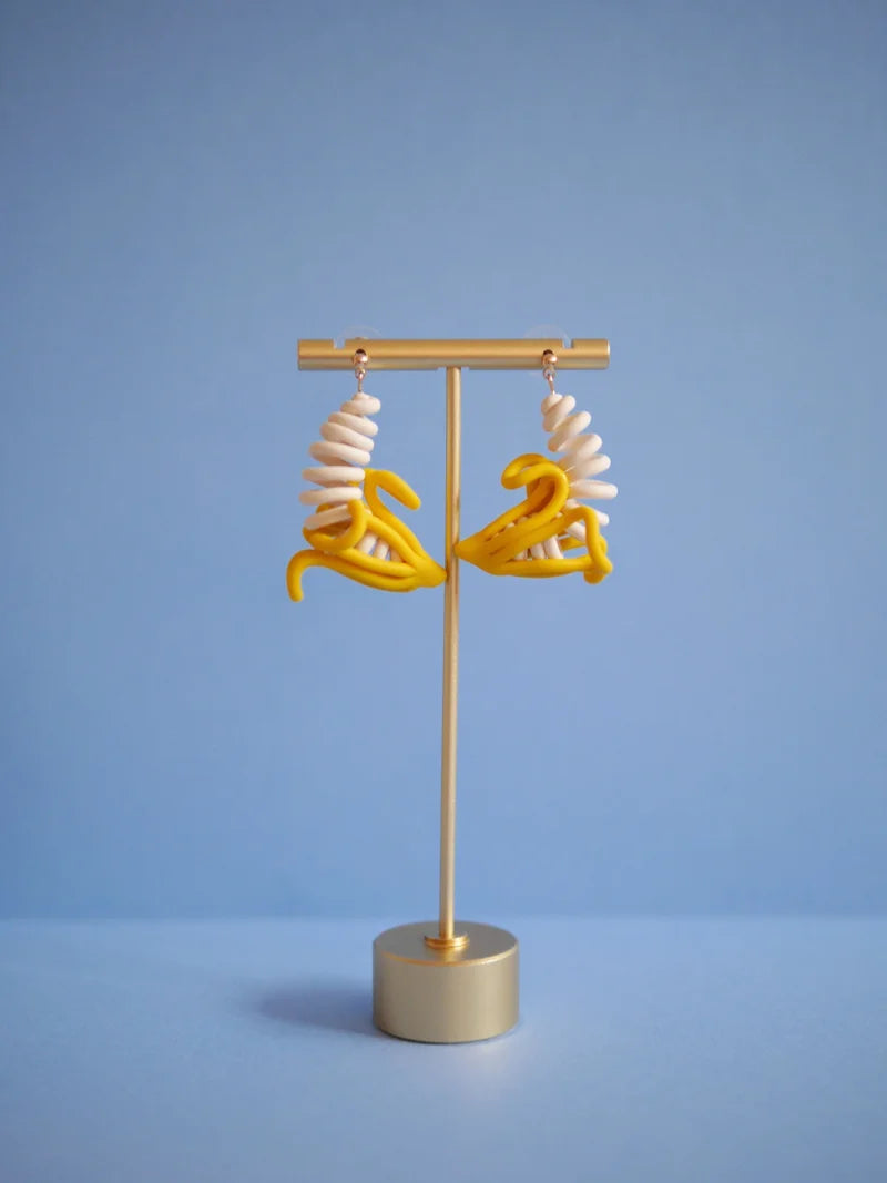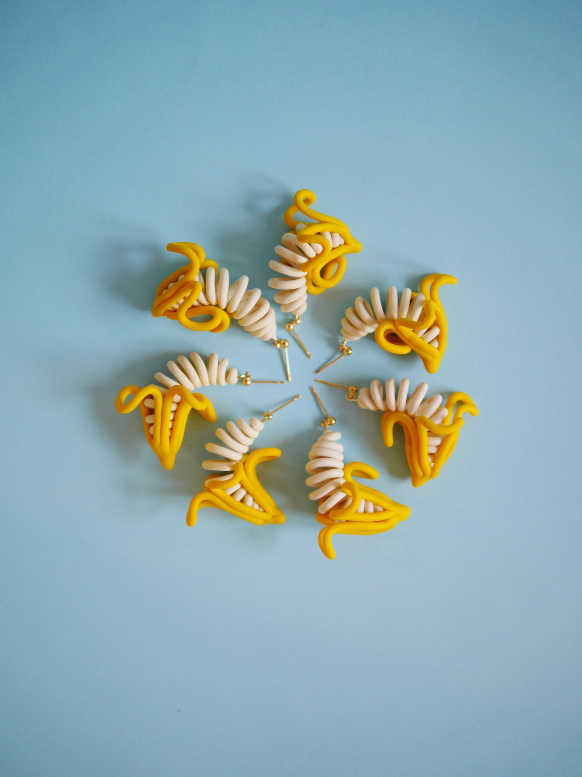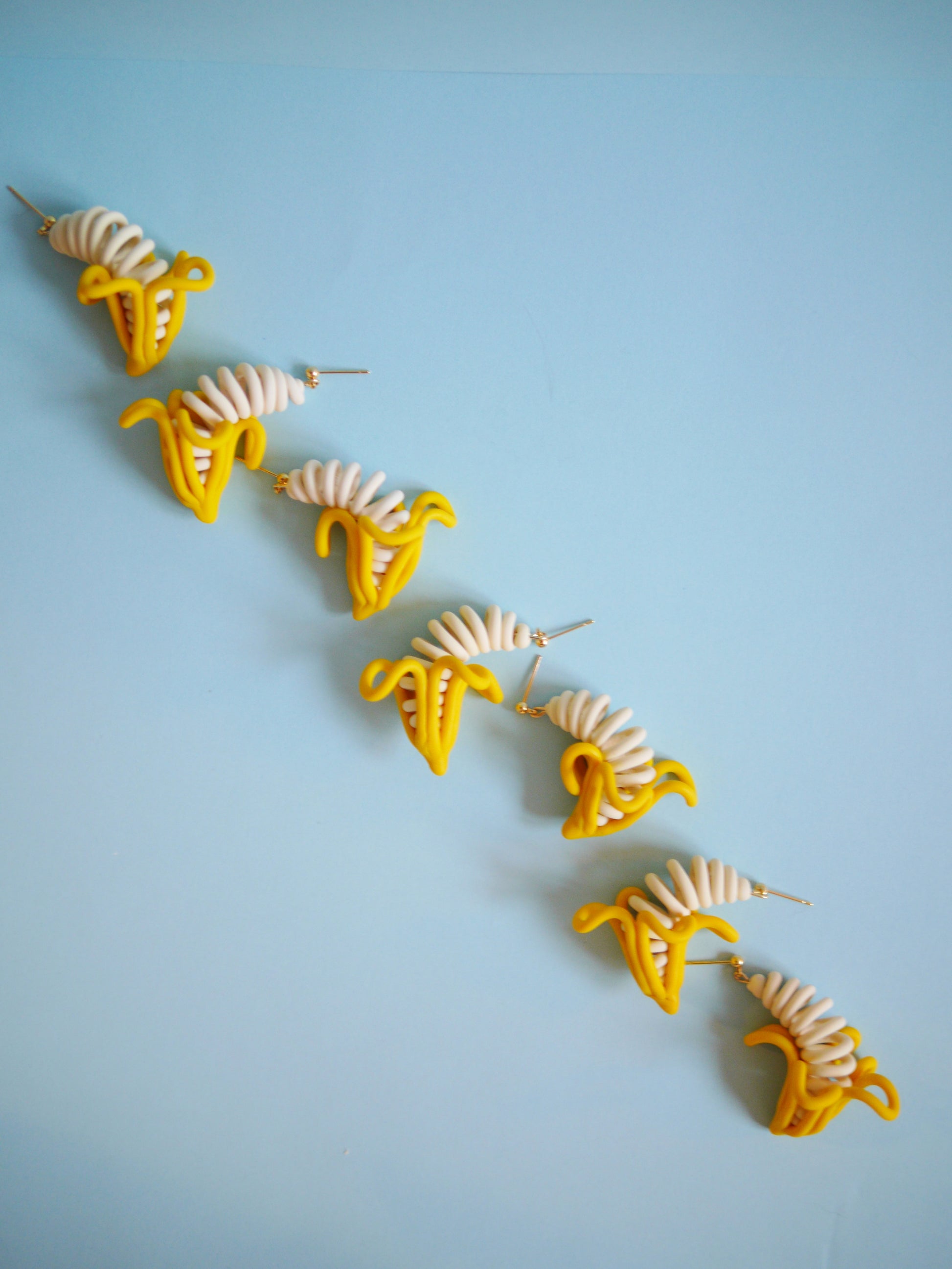 Handsculpted 3D polymer clay bananas featuring 14k gold plated stainless steel ball studs (earrings are lightweight + findings are hypoallergenic).