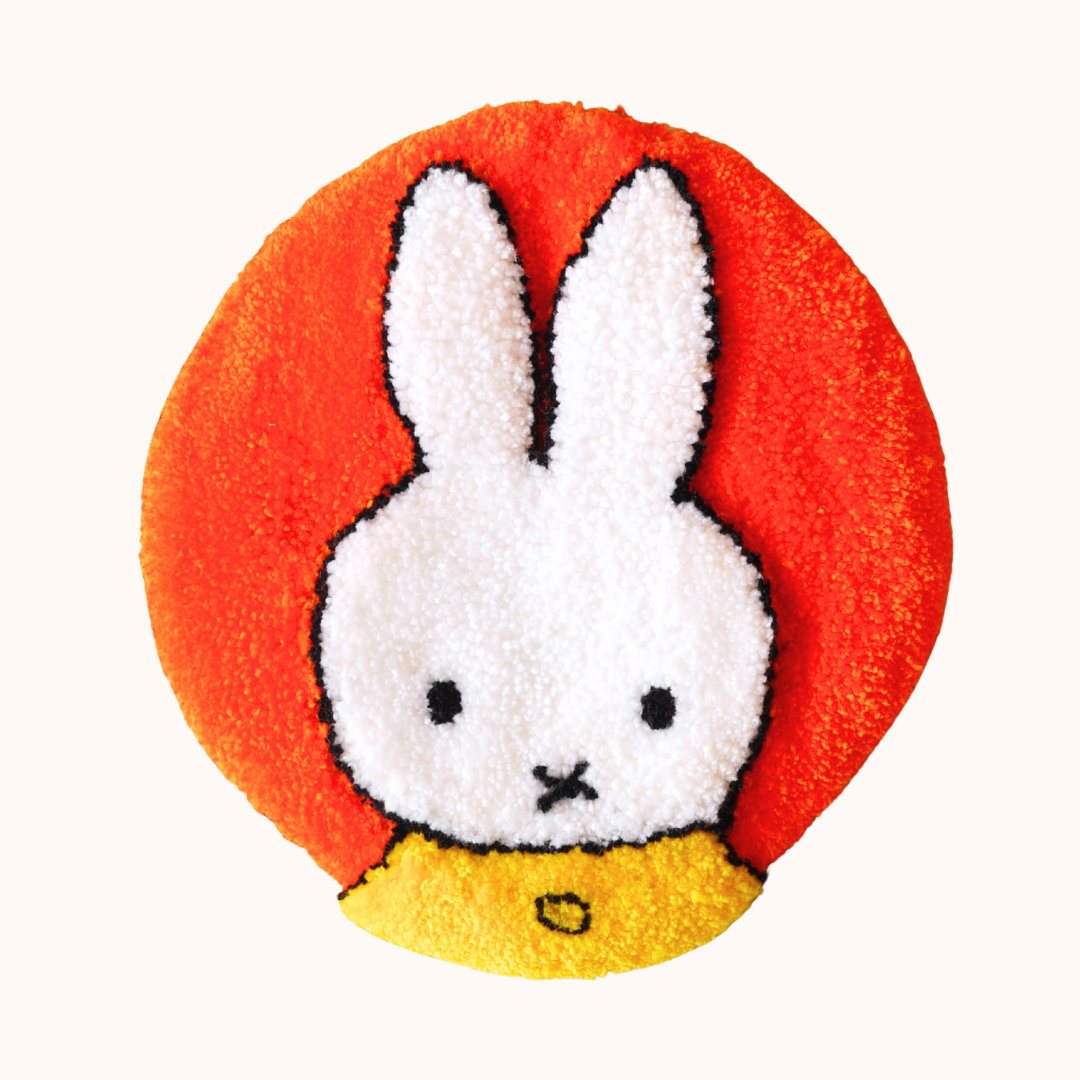 A handmade tufted rug of our fav bunny. Measures ~ 10.5 inches round. Hang it on your wall, display it on your table, use it as a mug rug, it's up to you!